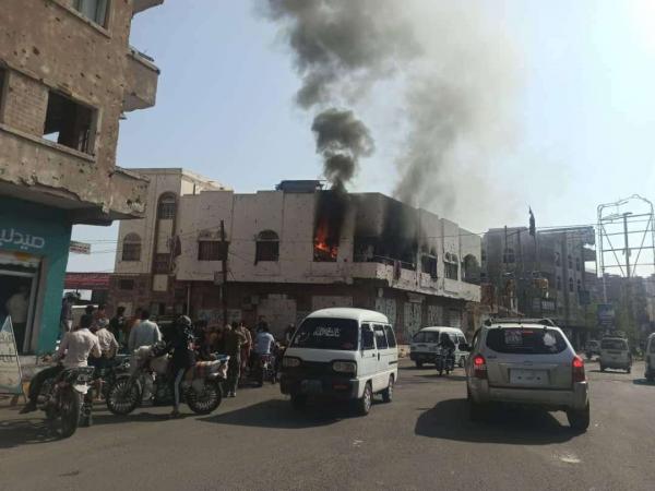 التهم حريق صباح اليوم الإثنين أحد المنازل في مدينة تعز، وسط محاولات لاخماد الحريق