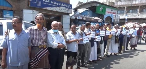 وفي الوقفة طالب المحتجون الحكومه والسلطه المحليه اعادة الكهرباء الى تعز التي تعيش في ظلام دامس منذ ثمانية اعوام بالاضافة الى صرف رواتب موظفي الكهرباء.