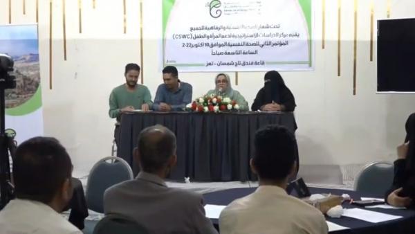 نظم مركز الدراسات الاستراتيجية لدعم المراه والطفل اليوم الإثنين في تعز المؤتمر الثاني للصحة النفسية تزامنا مع اليوم العالمي للصحة النفسية تحت شعار الصحة النفسية والرفاهية للجميع.