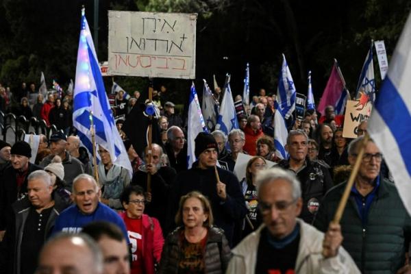 استمرت الاحتجاجات المُناهضة للحكومة الإسرائيلية، فى الشوارع والمفارق الرئيسة، وذلك للأسبوع الثالث عشر على التوالى، على الرغم من تعليق رئيس الحكومة بنيامين نتنياهو، تشريعات قضائية مثيرة للجدل رأت شريحة واسعة من الإسرائيليين أنها تقوض الديمقراطية.