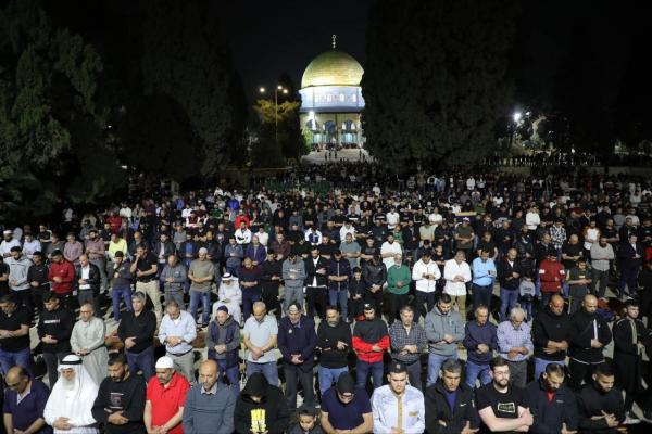 أدى عشرات الآلاف من المصلين مساء اليوم الأحد، صلاتي العشاء والتراويح الليلة في المسجد الأقصى، رغم اعتداءات الاحتلال وانتشاره العسكري في محيط المسجد وفي البلدة القديمة بمدينة القدس.