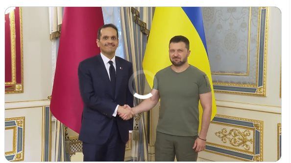 التقى الرئيس الأوكراني فولوديمير زيلينسكي، اليوم الجمعة، برئيس مجلس الوزراء وزير خارجية دولة قطر الشيخ محمد بن عبدالرحمن آل ثاني.