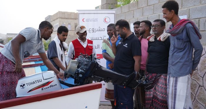 Qatar Red Crescent Society (QRCS), in partnership with Yemen Red Crescent Society (YRCS), distributed 44 fishing motorboats and various fishing tools in Brom Mayfa, Hadramaut governorate.