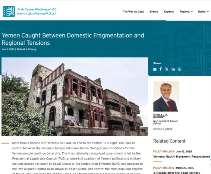 Yemen’s tragic descent into chaos, poverty, and humanitarian disaster can be laid at the doors of all parties, foreign and domestic, that have been involved in Yemen’s devastating war, wrote Nabeel A. Khoury in Arab Center Washington DC website, adding “More than a decade into Yemen’s civil war, no end to the conflict is in sight. The lines of control between the two main belligerents have barely changed, and conditions for the Yemeni people continue to be dire while economic conditions across the entire country are terrible”.