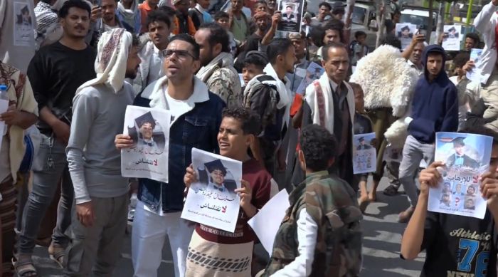 مئات المواطنين في تعز يتظاهرون للمطالبة بالقبض على قاتل الطفل مرسال عيدروس