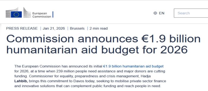 The European Commission has announced its initial €1.9 billion humanitarian aid budget for 2026, at a time when 239 million people need assistance and major donors are cutting funding. Commissioner for equality, preparedness and crisis management, Hadja Lahbib, announced this commitment to Davos Wednesday, seeking to mobilize private sector finance and innovative solutions that can complement public funding and reach people in need.